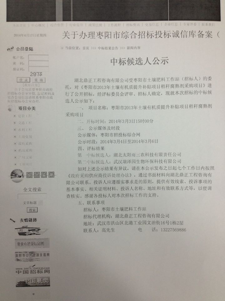 枣阳市2013年土壤有机质提升补贴项目秸秆腐熟剂采购