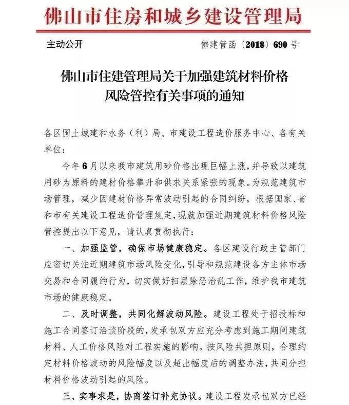 深圳市住房和建设局关于加强我市建设工程材料价格风险管控的通知