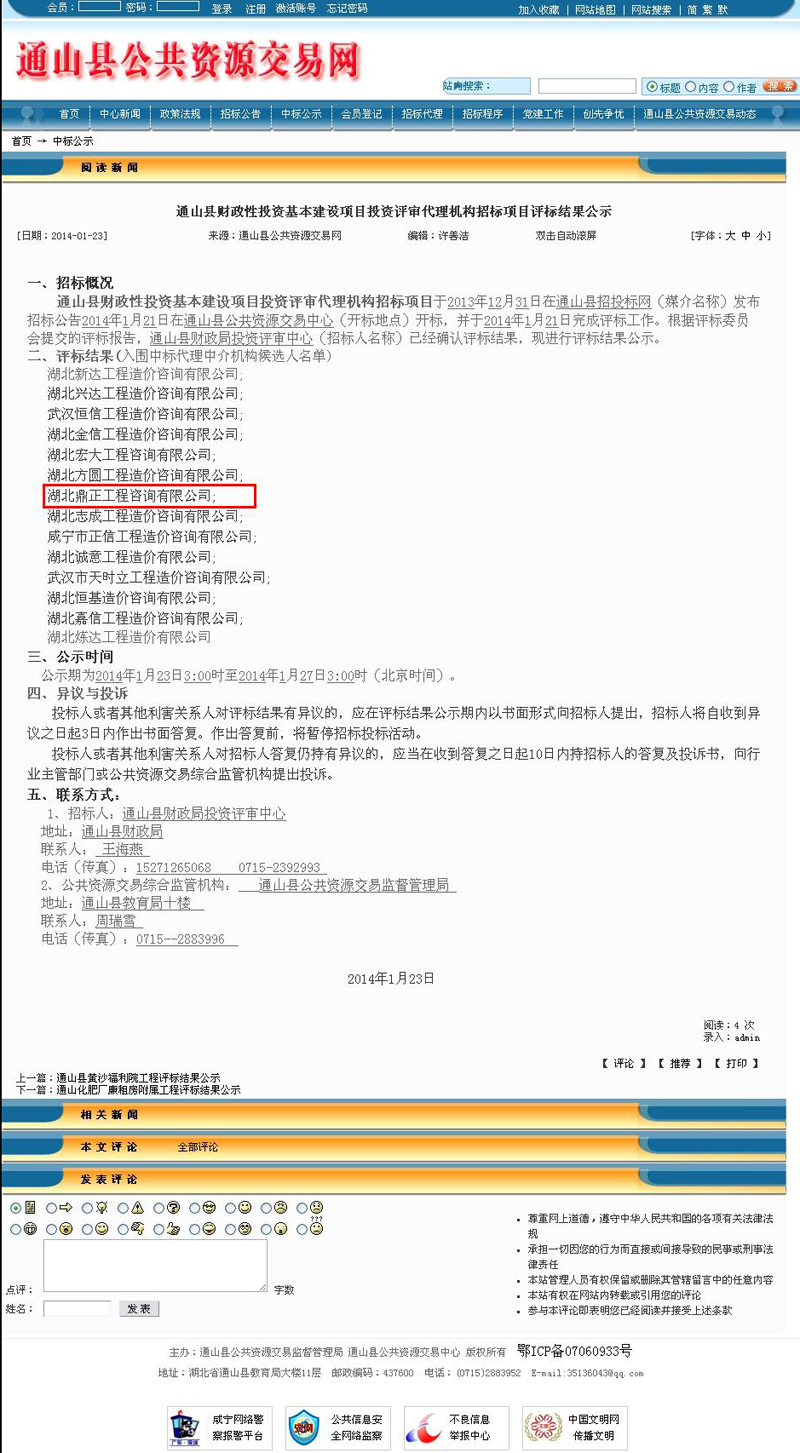 我公司入围通山县财政性投资基本建设项目投资评审代理机构候选名单