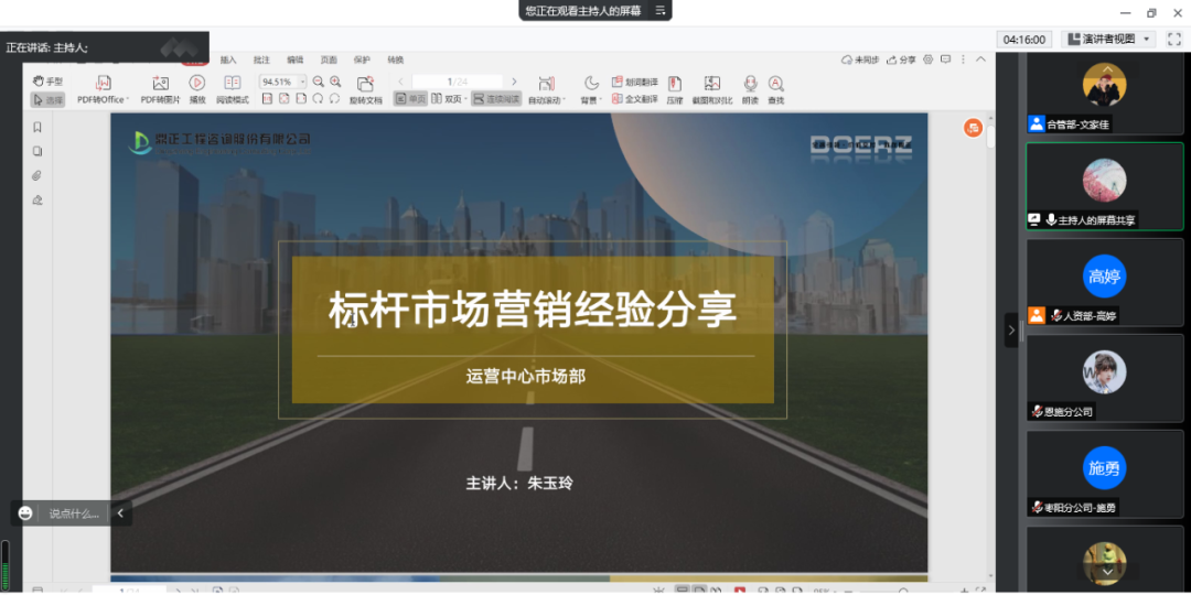 河南分公司张总从四个方面分享河南市场营销理念及策略:1.立人设,在与客户沟通时,我们要给客户树立一种“搞技术”的人设,先解答客户技术疑问,再谈商务合作。2.“海底捞式”服务,提供像“海底捞”一样的服务,主动与客户沟通,解决客户痛点需求。3.业务开拓“快狠准”,快(反应快、出解决方案快),准(咨询成果有水准),狠(严格要求,服务质量要高)。4.新营销思路,一方面是承接回款较好的优质项目,另一方面可承接受工程承包商委托并为其创造价值的咨询服务项目。
