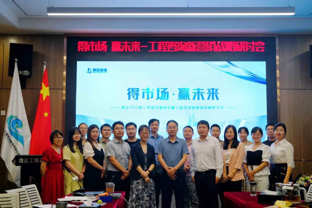 7月23日,鼎正2022年第二季度经营例会暨工程咨询新营销战略研讨会在鼎正第一办公空间珞珈会议室召开。王雁然董事长、毛迎霞总经理与各分公司负责人及总分公司各级管理干部等百余人通过线上与线下方式出席会议。