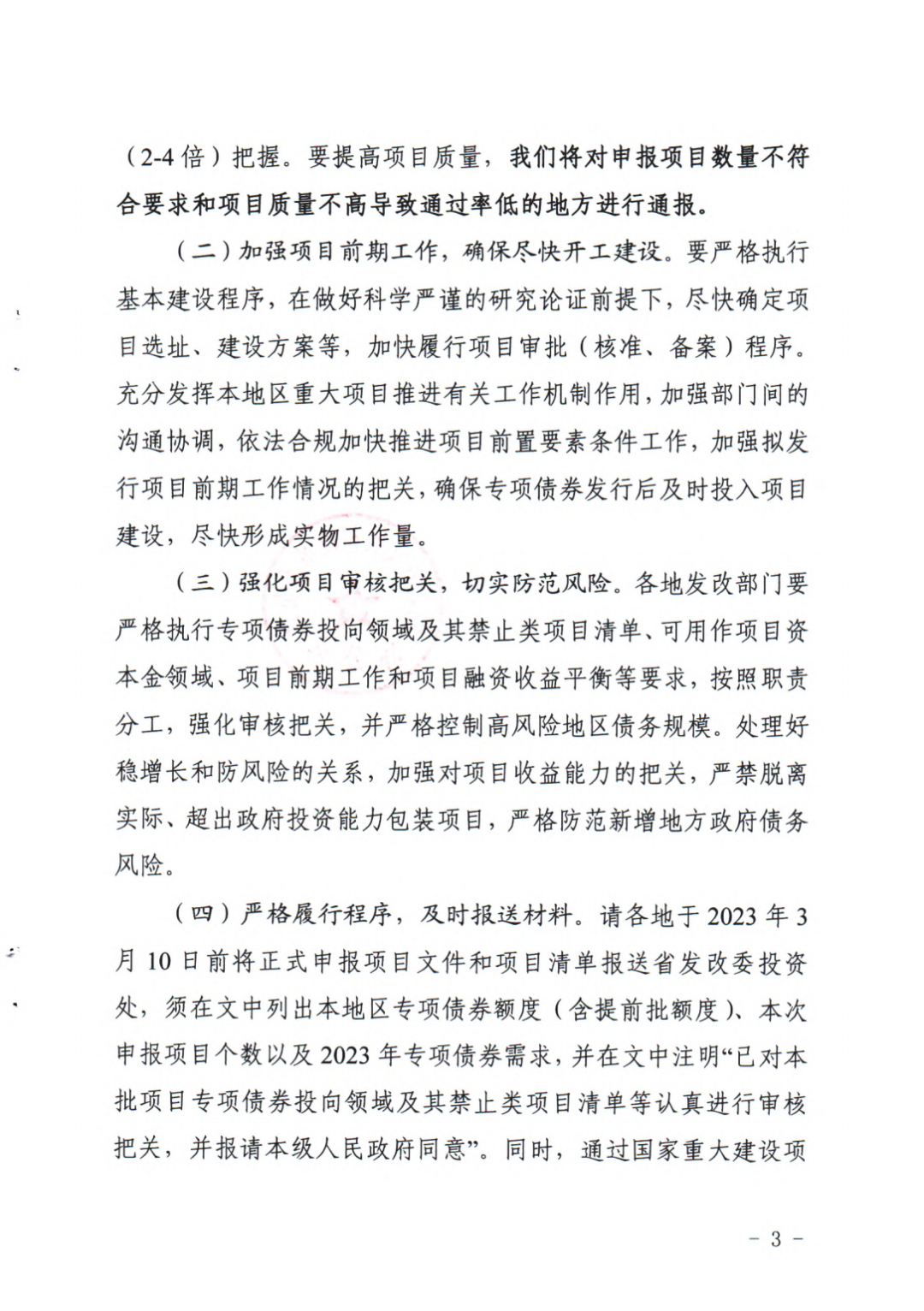 在2023 年 3月 10日前将正式申报项目文件和项目清单报送省发改委投资处。