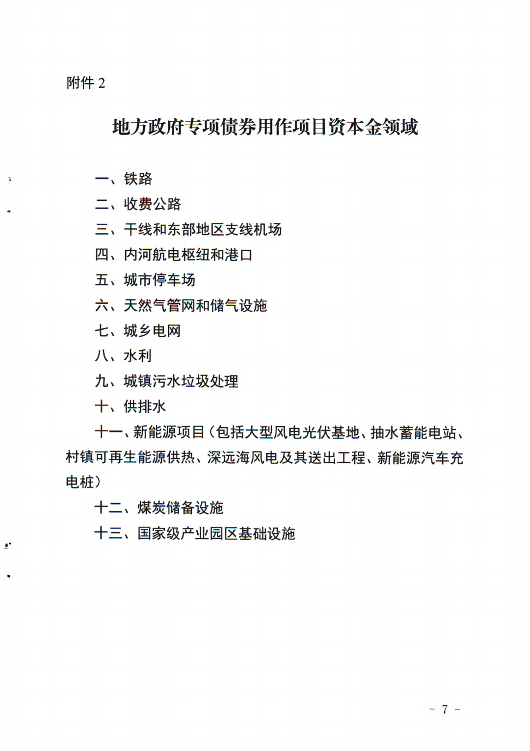 7、2023年地方政府专项债用作项目资本金领域是否有变化?