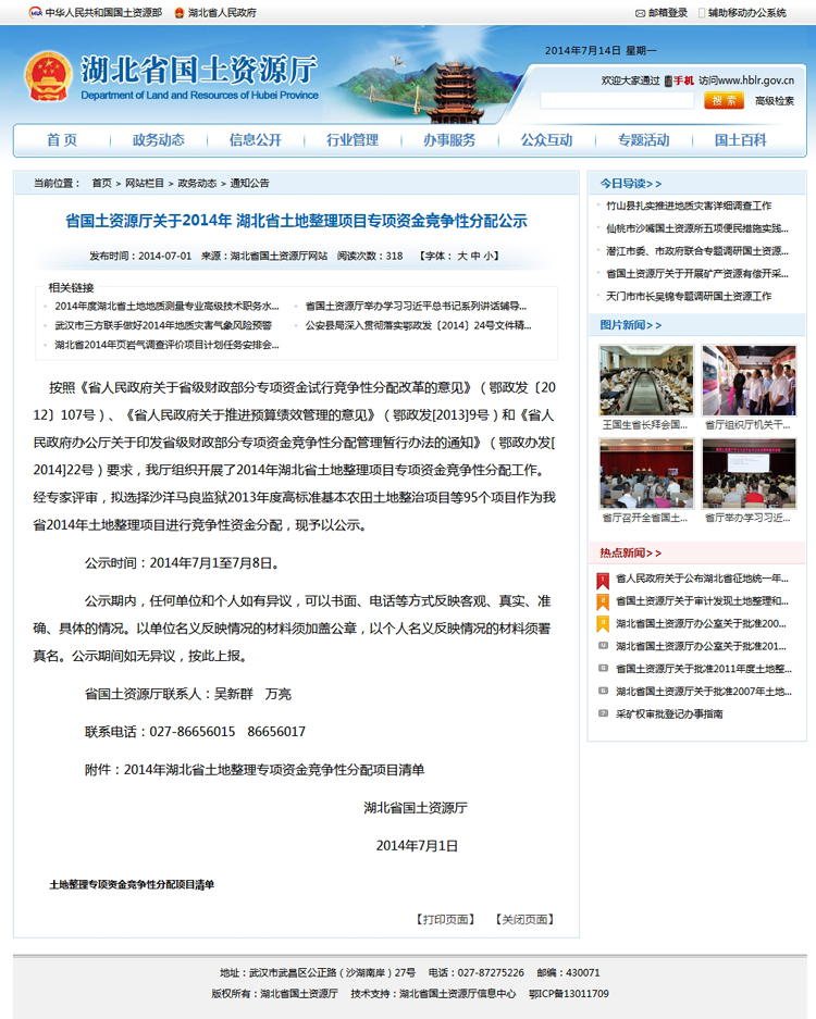 2014年湖北省土地整理专项资金竞争性分配项目清单  |