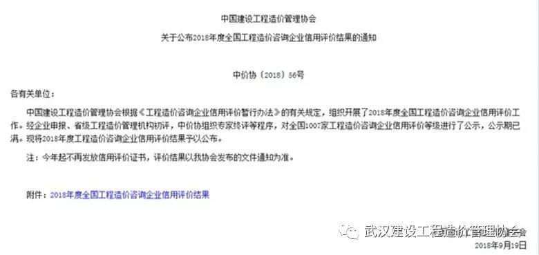 2018年9月19日,中国建设工程造价管理协会发布了“2018年度全国工程造价咨询企业信用评价结果”,此次湖北省仅有22家工程造价咨询单位获得AAA信用评级,我司从全国众多参评单位中脱颖而出,获此荣誉。