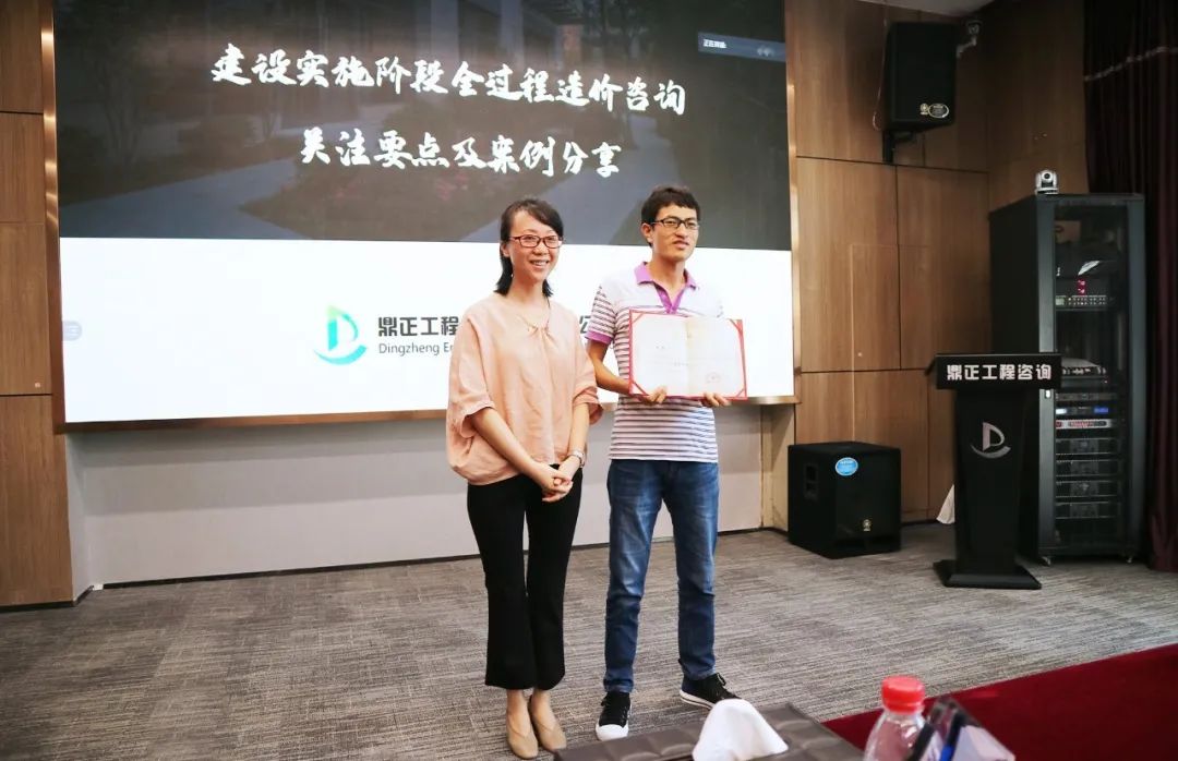 在交流会尾声,鼎正技术总监朱立冬、副总经理毛迎霞为鼎正荆州分公司技术负责人李素娟、项目经理沈雯颁发荣誉。